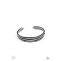 Two glistening gunmetal bars flank a row of glassy white rhinestones, coalescing into a dainty layered cuff around the wrist for a dash of refined edge.