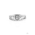 Serrated and studded silver bands flank a glistening band featuring an airy square centerpiece for a casual look. Features a dainty stretchy band for a flexible fit.