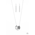 Delicately hammered in shimmery textures, an abstract silver frame swings from the bottom of a lengthened silver chain for a tribal inspired look. Features an adjustable clasp closure.