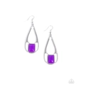 Featuring a faux stone finish, a rectangular Dahlia bead adorns the bottom of an elongated silver teardrop. The top of the silver frame features a faux wire wrap finish, adding a handcrafted flair to the colorful lure. Earring attaches to a standard fishhook fitting.