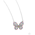 Bordered in multicolored and iridescent rhinestones, a collection of white emerald-cut dainty gems scatter across the interior of the airy silver butterfly. Additional dainty green rhinestones create the body of the butterfly for a further splash of color and whimsy. Features an adjustable clasp closure. Due to its prismatic palette, color may vary.
