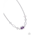 Interlocked along the center of a thick silver chain, a collection of glittery frames including white rhinestone-embellished silver ovals, white gems pressed in silver square frames, and round defaced white gems in floral-studded silver frames pattern along the neckline. Featured in the center of the design, a textured dainty silver butterfly flutters atop a Plum-painted oval frame, featuring silver butterfly detailing and a border of white rhinestones for a whimsical finish. Features an adjustable clasp closure.