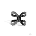 Featuring a high-sheen finish, thick, flat gunmetal bars delicately loop and overlap into airy gunmetal frames around the wrist that delicately connect into a layered bangle-like bracelet. Features a hinged closure.