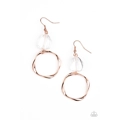 An imperfect crystal-like gem gives way to a twisted shiny copper hoop, resulting in a refined asymmetrical display. Earring attaches to a standard fishhook fitting.