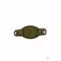 Stamped in a rustic dandelion decoration, a piece of green leather is studded in place across the front of a distressed leather band for a whimsically southern look. Features an adjustable snap closure.