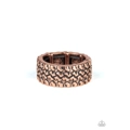 Embossed in a tactile tread-like pattern, a glistening copper band curls around the finger for an edgy look. Features a stretchy band for a flexible fit.