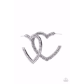 Two rows of blinding white rhinestones are encrusted along the front of a heart shaped gunmetal hoop, creating a heart-stopping sparkle. Hoop measures approximately 2" in diameter. Earring attaches to a standard post fitting.