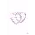 Two rows of blinding white rhinestones are encrusted along the front of a heart shaped silver hoop, creating a heart-stopping sparkle. Hoop measures approximately 2" in diameter. Earring attaches to a standard post fitting.
