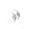 Featuring icy white and iridescent finishes, a fragmented cluster of teardrop, marquise, and round gems attach to a smooth silver hoop. Set in pronged fittings, the glittery gems create instant edge and attitude. Earring attaches to a standard post fitting. Hoop measures approximately 2" in diameter.