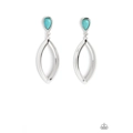 Set in a sleek silver fitting, a teardrop turquoise stone gives way to a beveled silver teardrop frame for an artisan inspired expression. Earring attaches to a standard post fitting.