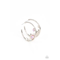 Featuring various cuts and shimmer, mismatched white, iridescent and UV peach rhinestones delicately collect along the bottom of a classic silver hoop for a glitzy accent. Earring attaches to a standard post fitting. Hoop measures approximately 1 3/4" in diameter.