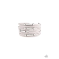 Strung between two silver fittings, glistening silver and gunmetal accents slide along strands of gray suede for a seasonal look. Features an adjustable clasp closure.