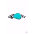 Textured silver frames hold in place rows of silver rounded snake chain around the wrist. An asymmetrical turquoise stone pendant adorns the center of the earthy compilation, adding a rustic pop of color. Features a fold over clasp closure.