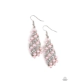 White rhinestone encrusted ribbons wrap around a bubbly pink pearl teardrop frame for a timeless look. Earring attaches to a standard fishhook fitting.