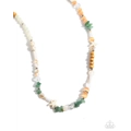 Infused along an invisible string, a collection of silver, clear, light brown wood, white stone, jade, faceted ivory, and orange cat's eye beads cascade below the neckline. White shells and white starfish charms are added to the display for a chic coastal finish. Features an adjustable clasp closure. As the stone elements in this piece are natural, some color variation is normal.