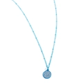 Featuring an electric blue hue, a white rhinestone-encrusted pendant glides along an electric blue satellite chain for a bright pop of color along the neckline. Features an adjustable clasp closure.