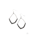 A shiny silver bar asymmetrically bends into an abstract geometric shape. Separated by silver studs, a smoldering border of black rhinestones gradually increases in size along the bottom of the frame for an edgy finish. Earring attaches to a standard fishhook fitting.