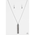 Featuring a rounded edge, a shimmery silver pedant is encrusted in rows of glittery hematite rhinestones for a dramatic look. Features an adjustable clasp closure.
