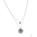 Two shimmery silver chains layer down the chest. Featuring a garnet-like rhinestone in a silver frame, the uppermost strand gives way to a classic silver pendant featuring an embossed snowdrop flower, flawlessly displaying the sentimental symbols that celebrate those born in January. Features an adjustable clasp closure.