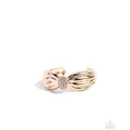 A gold cuff features rippled textures that meet in the center, accented with a cluster of glittering white rhinestones for a glamorous touch.