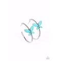 A dainty, turquoise stone butterfly flutters atop the curve of a glistening silver hoop dotted with silver studs, creating a refreshing, whimsical sight. Earring attaches to a standard post fitting. Hoop measures approximately 1 1/2" in diameter. As the stone elements in this piece are natural, some color variation is normal.