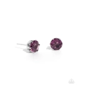 A sparkling amethyst rhinestone is nestled inside a classic silver frame for a beautiful birthstone-inspired display. Earring attaches to a standard post fitting.