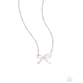 Dipped in a shimmery finish, a collection of soft pink beads loop and curl into a refined bow pendant from a silver beaded center. A dainty silver satellite chain connects to the bow charm for additional feminine detail. Features an adjustable clasp closure.