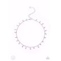 Glassy white rhinestones swing from a dainty silver chain around the neck, creating a timeless fringe. Features an adjustable clasp closure.