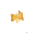 Featuring an airy stenciled pattern, yellow leather butterflies flutter across the wrist as they delicately connect into a colorful centerpiece. Features an adjustable snap closure.