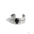 Decorated in artisan inspired patterns and textured studs, the center of a scalloped silver cuff is dotted with an oversized black stone teardrop for an earthy vibe.