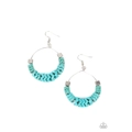 Featuring a faux stone finish, crimped turquoise discs glide along a dainty wire hoop. A pair of cube beads join the earthy compilation, adding an edgy hint of shimmer. Earring attaches to a standard fishhook fitting.