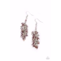 Threaded along dainty rods, an iridescent collection of smoky and purple crystal-like beads cluster along a silver chain, creating a stellar tassel. Earring attaches to a standard fishhook fitting.