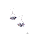 Featuring an oil spill finish, a collection of chiseled blue beads cluster at the bottom of a sleek silver teardrop frame, creating a stellar fringe. Earring attaches to a standard fishhook fitting.