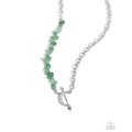 Featuring a subtle texture, a silver cable chain combines with a strand of chiseled jade stones for a straightforward sassy design along the collar. Dusted in varying sizes of opalescent rhinestones, a silver crescent moon is interrupted by a tilted silver arrow from the bottom of the mismatched chain for a cosmic finish. Features an adjustable clasp closure. As the stone elements in this piece are natural, some color variation is normal.