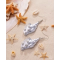 Ocean-inspired frames feature elegant silver conch shells adorned with glistening white rhinestones and delicate pearl-like accents, adding a touch of coastal glamour. The intricate detailing of the shell creates a realistic texture, while the shimmering embellishments add a hint of sparkle. Earring attaches to a standard fishhook fitting.