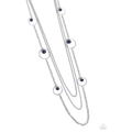 Infused with two plain strands of shimmery silver chains, polished blue beads and shimmery silver hoops trickle along a bold silver chain for a whimsically layered look. Features an adjustable clasp closure.