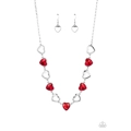 Shiny, silver silhouette hearts alternate between faceted red heart gems pressed into silver frames.The high-sheen and sparkly display coalesce around the collar for a cupid-like charm. Features an adjustable clasp closure.