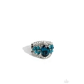 Bordered in dainty rows of glassy white rhinestones, leafy blue rhinestones bloom from a dramatically oversized blue oval rhinestone that coalesces into a glamorous centerpiece atop the finger. Features a stretchy band for a flexible fit.