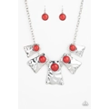 Rippling with hammered details, flared silver frames join below the collar, creating a fierce fringe. Fiery red stones are pressed into the tops of the frames for a colorful finish. Features an adjustable clasp closure.
