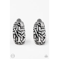 Brushed in an antiqued shimmer, scraps of silver collide into a tactile frame for an edgy urban look. Earring attaches to a standard clip-on fitting.