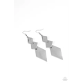 A trio of shiny mismatched kite-shaped frames overlap into a sharp-looking lure. Earring attaches to a standard fishhook fitting.
