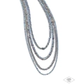 Dainty rows of classic oil spill chains, oil spill satellite chains, and strands of glassy blue iridescent rhinestones, create dazzling layers around the neck. Features an adjustable clasp closure. Due to its prismatic palette, color may vary.