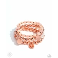 Shiny copper faceted and sleek beads and discs combine with ivory and light peach beads. Glossy white pearls create an additional refinement and glow to the stack.