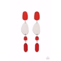 Painted in a fiery red finish, a shiny collection of asymmetrical frames link with a glistening silver frame, creating an abstract lure. Earring attaches to a standard post fitting.