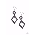 Embellished in smoldering hematite rhinestones, two asymmetrical gunmetal diamond shaped frames link into an edgy lure for a glitzy finish. Earring attaches to a standard fishhook fitting.