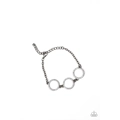Encrusted in glassy white rhinestones, three glittery gunmetal rings link across the wrist for a glamorous look. Features an adjustable clasp closure.