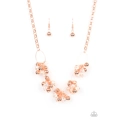 Clusters of glassy iridescent and shiny copper beads link with textured shiny copper ovals, creating a bubbly effervescence below the collar. Features an adjustable clasp closure.
