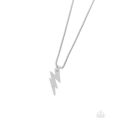 Gliding along a rounded silver box chain, a glistening silver lightning bolt charm cascades below the neckline for an electrically edgy display. Features an adjustable clasp closure.