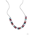 Featuring pronged frames of three, emerald-cut bars splashed in glassy blue, red, purple, and pink hues collect along a dainty silver chain down the neckline for a refined pop of color. Features an adjustable clasp closure.