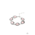 Dotted with glowing pink cat's eye stone centers, ornate silver teardrops link around the wrist for a whimsical flair. Features an adjustable clasp closure.